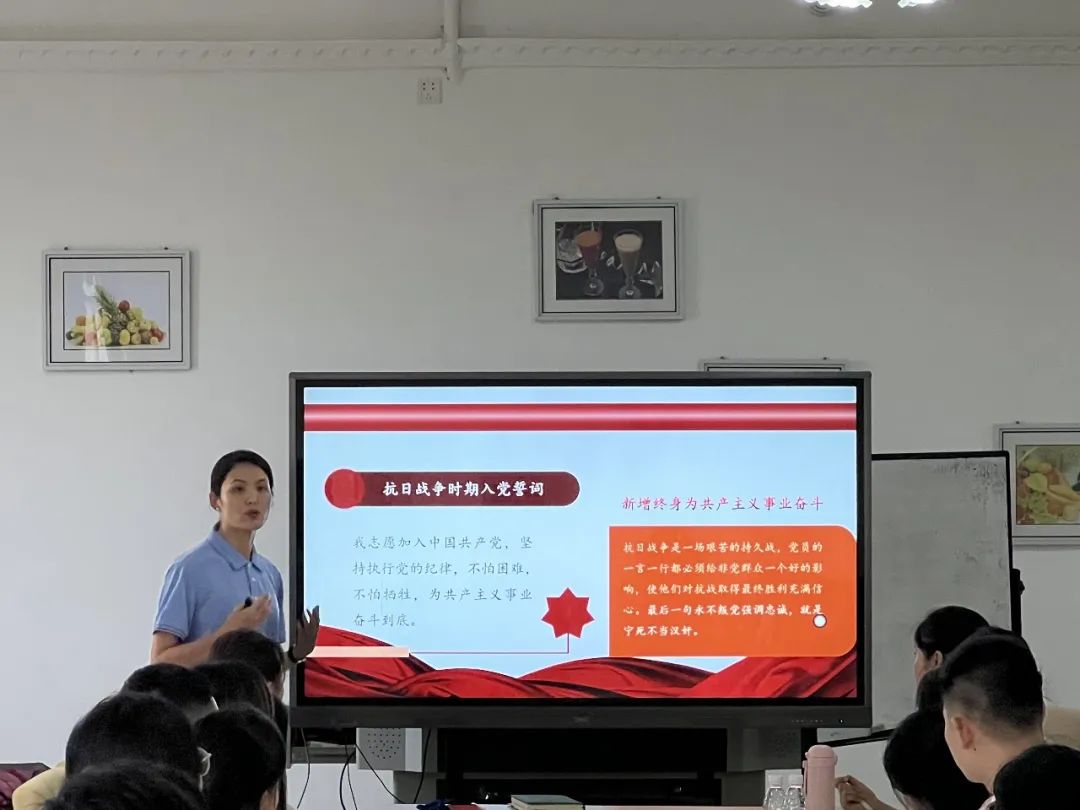 为深入开展学习贯彻习近平新时代中国特色社会主义思想主题教育,增强毕业生党员的使命担当,引导毕业生党员在新的人生起点继续发挥先锋模范作用,6月15日,2023届毕业生党员“最后一堂党课”,公司党总支副书记刘萍男为毕业生上题为《从入党誓词领悟党员的初心和使命》的党课。