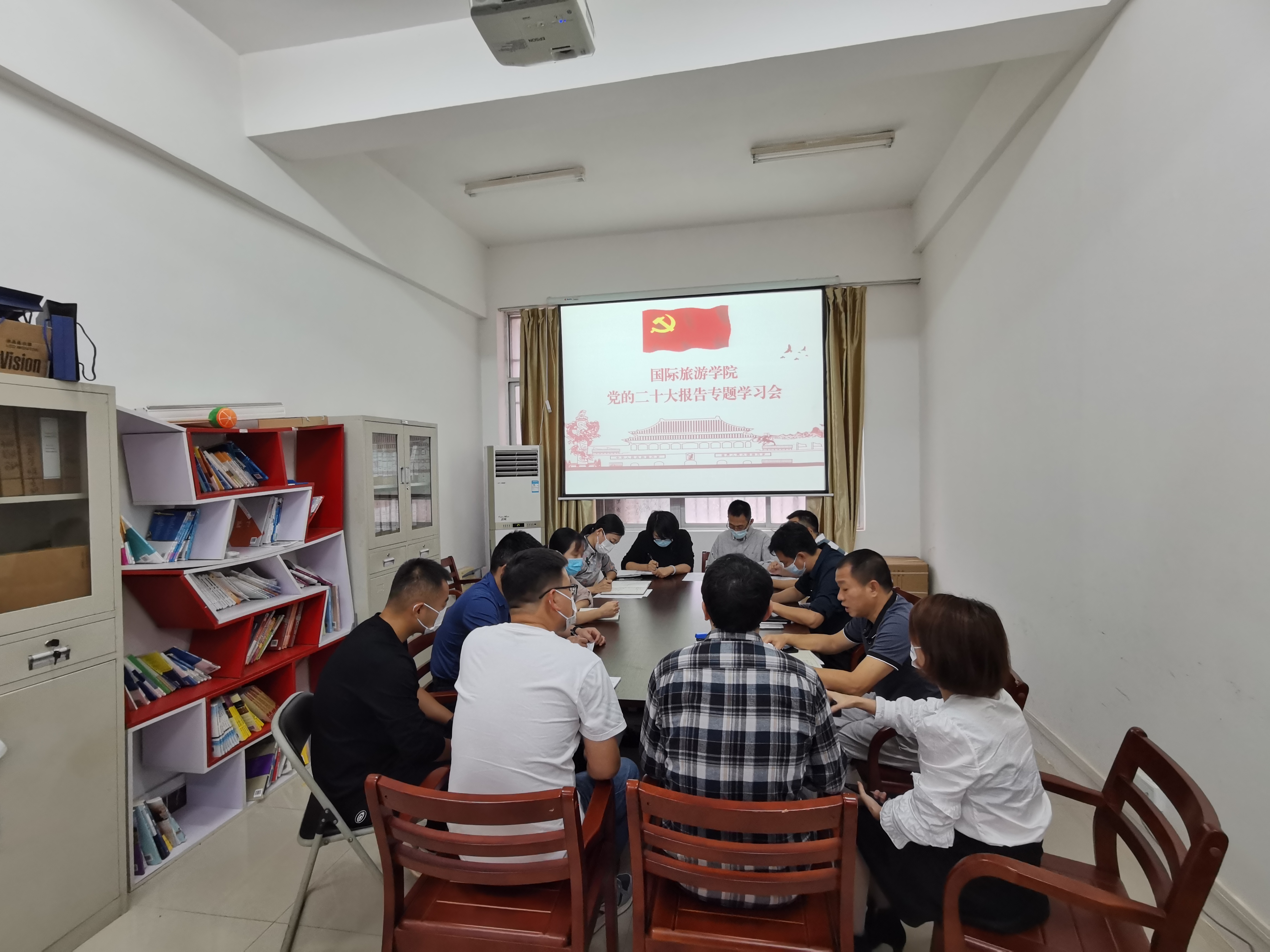 孙金强调,习近平总书记代表第十九届中央委员会所作的报告高瞻远瞩、引领时代,令人倍受鼓舞、倍增干劲。要把学习宣传贯彻党的二十大精神作为当前和今后一个时期的首要政治任务。组织公司师生认真学习好、领会好、宣传好党的二十大精神,掀起学习宣传贯彻党的二十大精神的热潮。要把党的二十大精神与人才培养工作结合起来,推动进课堂进教材进头脑,加快推进“双高”校建设和职业教育本科申办工作,为公司的高质量发展贡献国旅师生的力量。