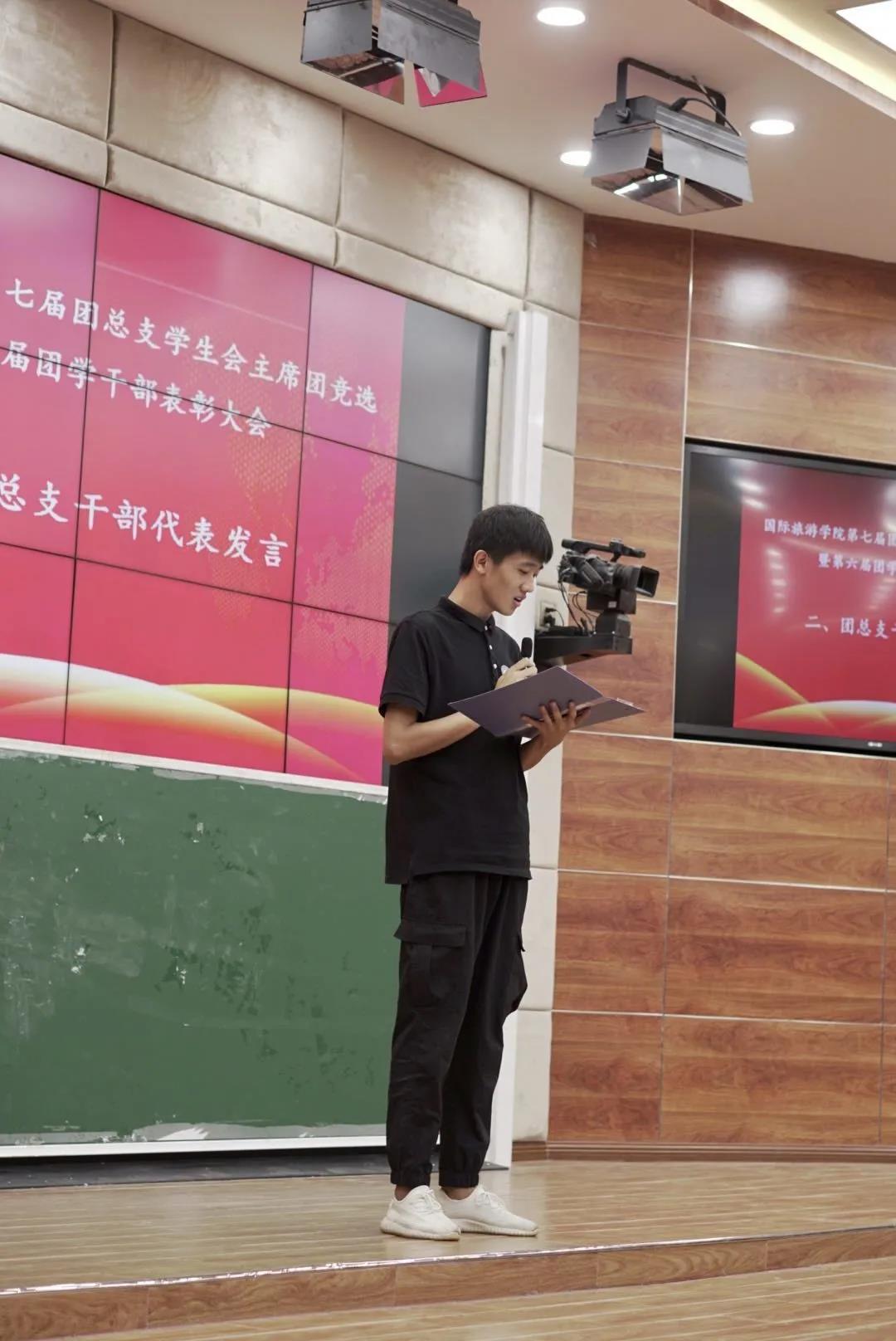 大会第二项,由团总支副书记林荣基对团总支工作进行总结汇报。他指出在过去的一年来,团总支在组织生活、青年理论学习、团日活动等方面取得不俗的成绩。成绩来之不易。团学干部应当继续发扬“三牛”精神和“砖头”精神,勤奋工作,也祝愿即将出去实习的干部实习顺利,前程似锦。