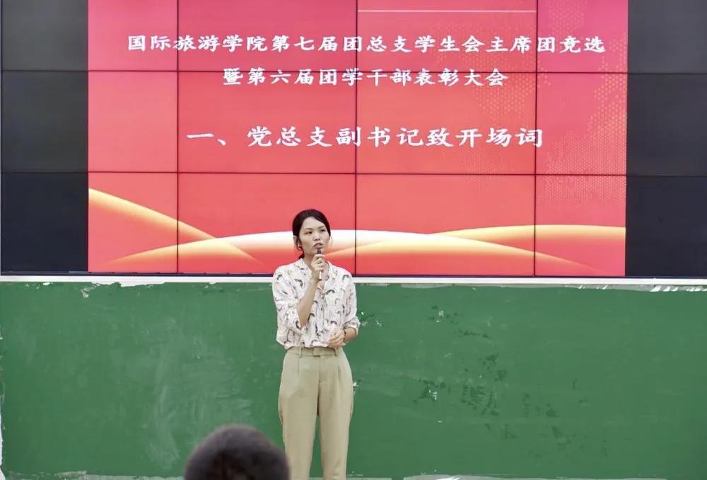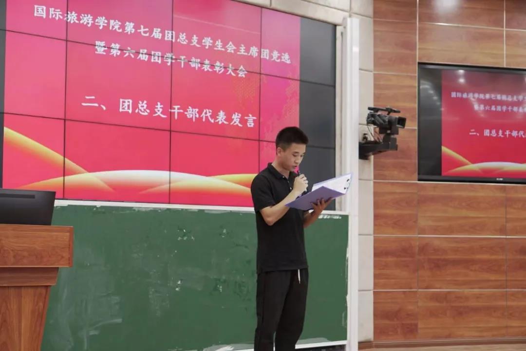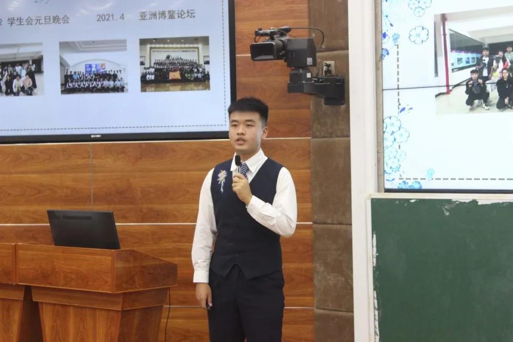 随后,员工会主席赵明彪对团学工作的总结汇报。他表达了对老师及同事们的感谢,同时也对第七届团总支员工会主席团候选人给予了期望,希望他们以大局为重,发扬团队精神,更好地为老师和同学们服务。