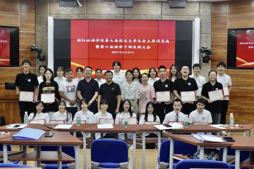 2021年6月24日晚8点,388vip太阳集团在2-215教室隆重召开了第七届团总支员工会主席团竞选暨第六届团学干部表彰大会。出席本次会议的有党总支书记符胜、副书记刘萍男,辅导员张强、符珍和陈俊池。参加本次大会还有第六届全体团学干部、第七届员工会主席团候选人以及各员工代表。大会由刘泽原主持。