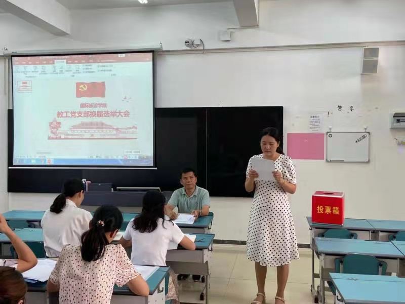 符胜同志首先宣读了组织人事处关于《支部换届提醒的通知》,并对新一届教工党支部委员候选人产生情况作了说明。经现场无记名投票,王晓明、王荣、吴贤贤、陈红颖四位同志当选为新一届支部委员。
