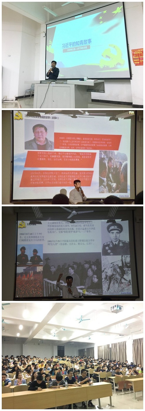 报告由知识青年上山下乡、文化大革命、习近平当知青的背景、习近平当知青的故事、习近平回村看望父老乡亲的故事和结束语等六部分组成。符胜书记结合世情、国情、党情,以习近平过“‘过五关’”、“解衣推食”、“帮老汉拉车”、“帮老乡治腿”、“办沼气”等8个真实的故事,深入浅出地讲解了习近平总书记当知青的七年时间里所经受的苦难,也把总书记青少年时期踏踏实实干事业的感人事迹生动展现在同学们的面前,让同学们真切地看到了人民领袖确实来自人民,人民领袖确实是为了人民。