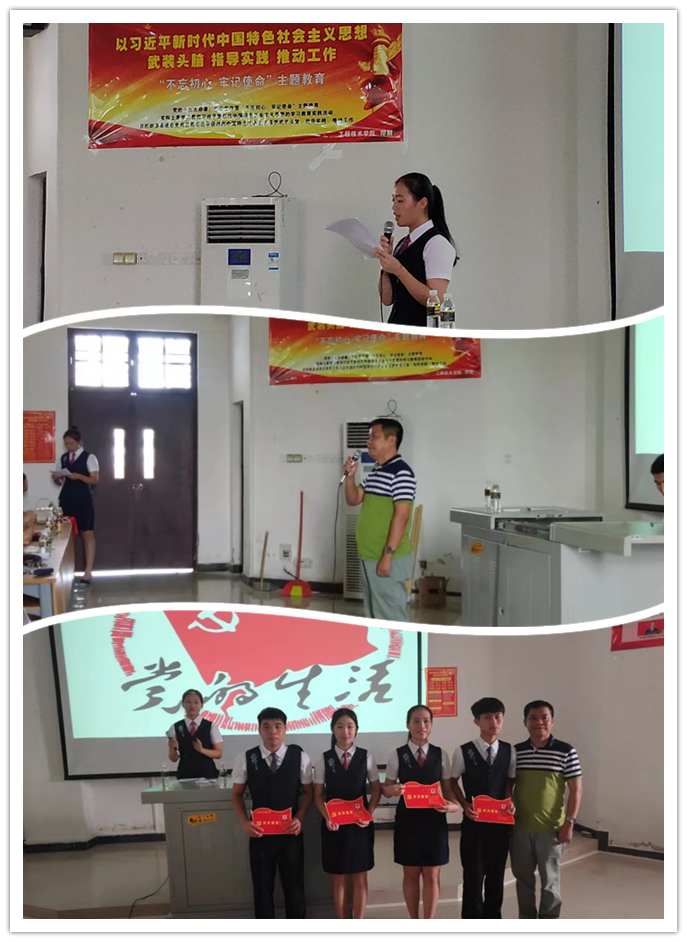 会议第一项进行党员寝室颁牌仪式。这次对优秀共产党员的表彰,表彰先进及对党员的重视,让优秀党员起到带头作用,成为同学们的榜样,是对党的十八大以来基层党组织和广大党员贯彻全面从严治党要求、充分发挥战斗堡垒作用和先锋模范作用的又一次展示。首先符胜书记上台做了重要讲话并代表旅游管理公司领导们向全体师生表示热烈祝贺,向辛勤耕耘在员工工作前线的全体辅导员致以敬意,向刻苦学习、勇攀高峰为公司建设和发展争得荣誉的同学们表示由衷的赞美和表扬。并且还强调以立德树人为根本任务,以理想信念教育为核心,以社会主义核心价值观为统领,积极构建育、服务、管理并重的员工工作模式和总结了近期的表现。在颁奖时符胜书记亲切的向获奖的同学们表示真诚的祝福。最后符书记以一首激昂的歌曲结束了讲话,律动的情感在心里荡漾,沐浴着和煦的春风,让青春飞扬!接着,获奖党员代表上台发言表达了作为先进党员所要坚持的信念,也坚定了为学弟学妹们做好榜样的信心。