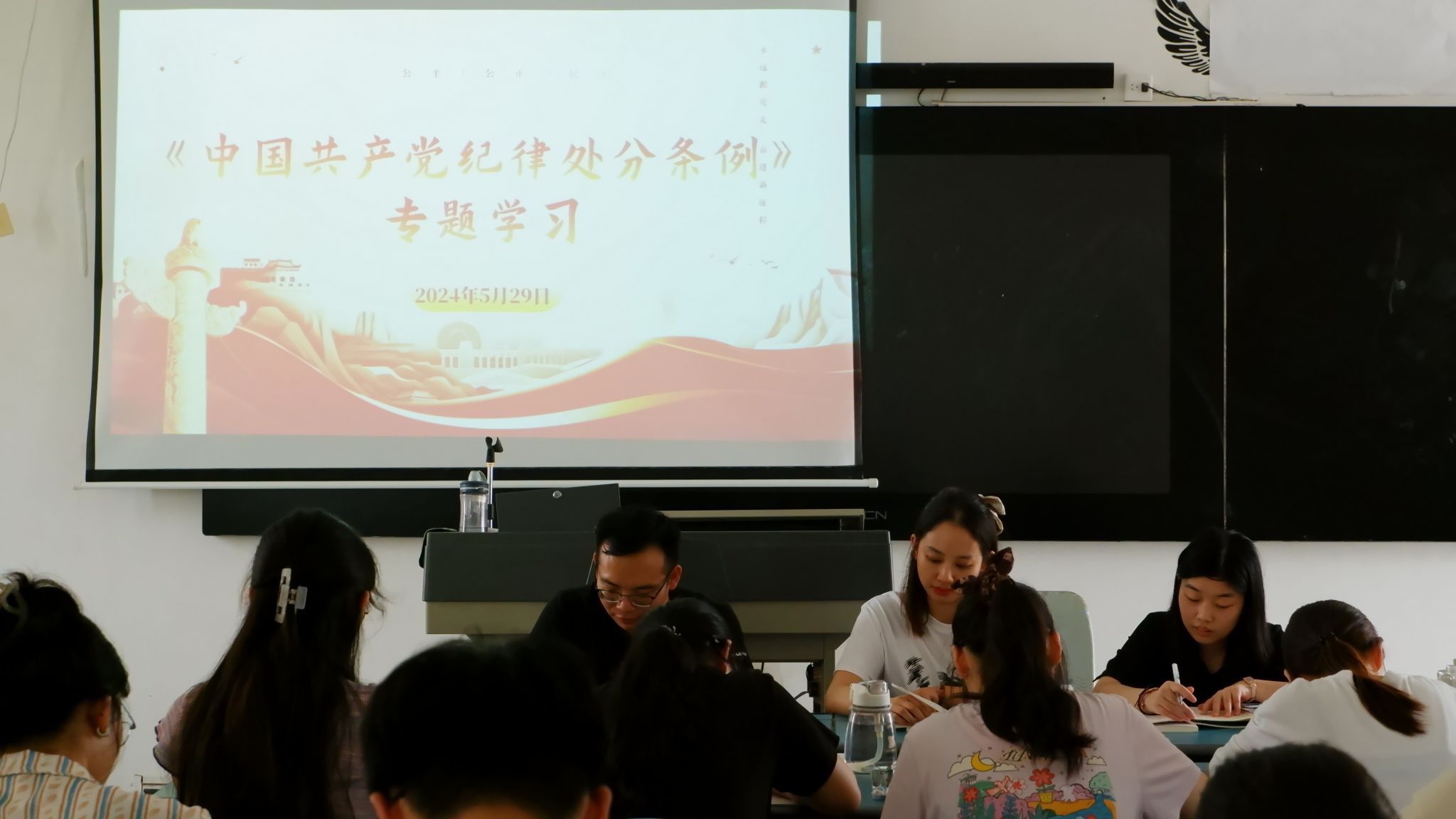 为进一步增强党员的纪律意识,筑牢底线思维。5月29日,388vip太阳集团员工党支部在2-504召开《中国共产党纪律处分条例》专题学习会。辅导员樊靖、李越、张璐璐及全体员工党员参会。