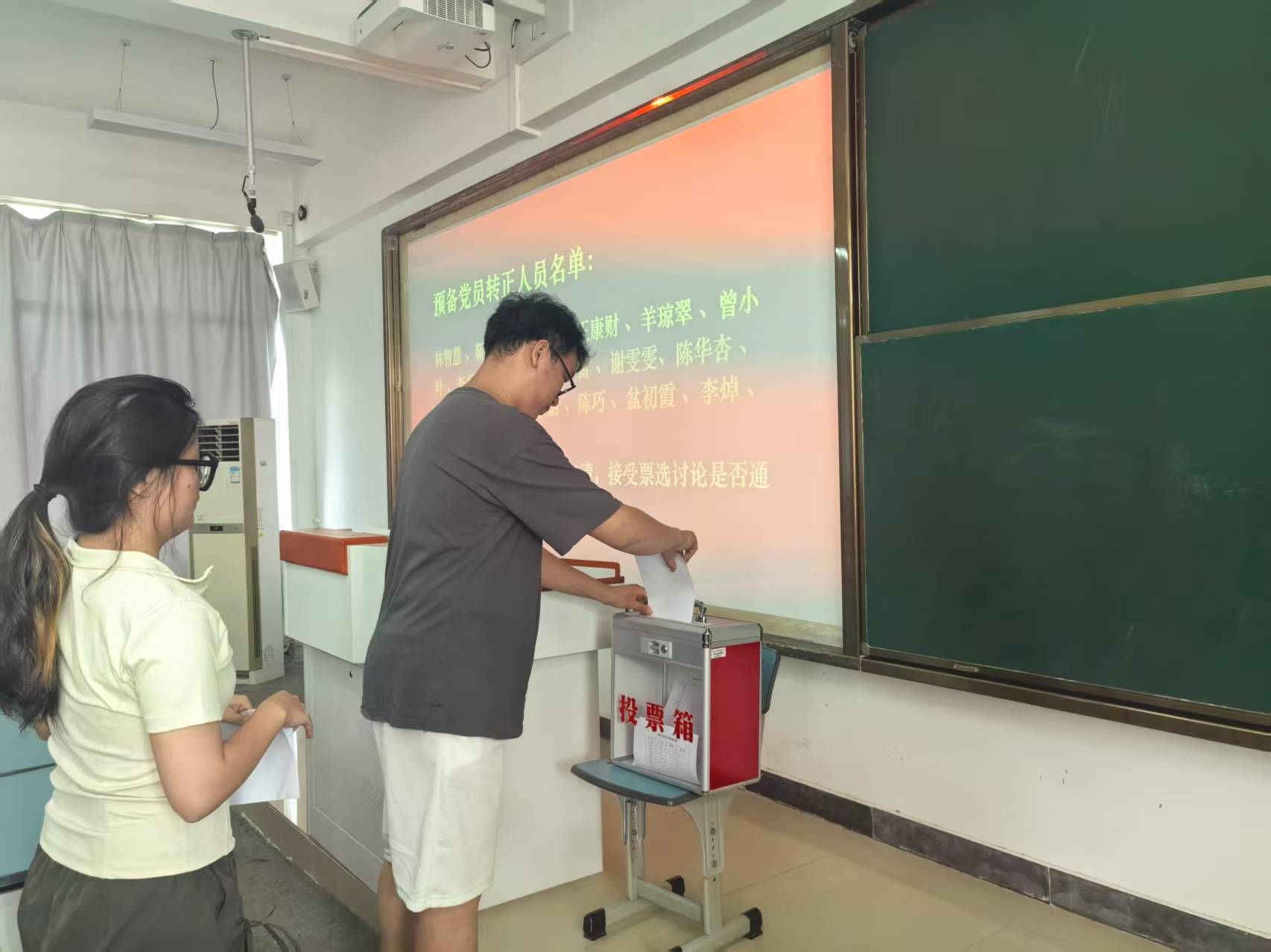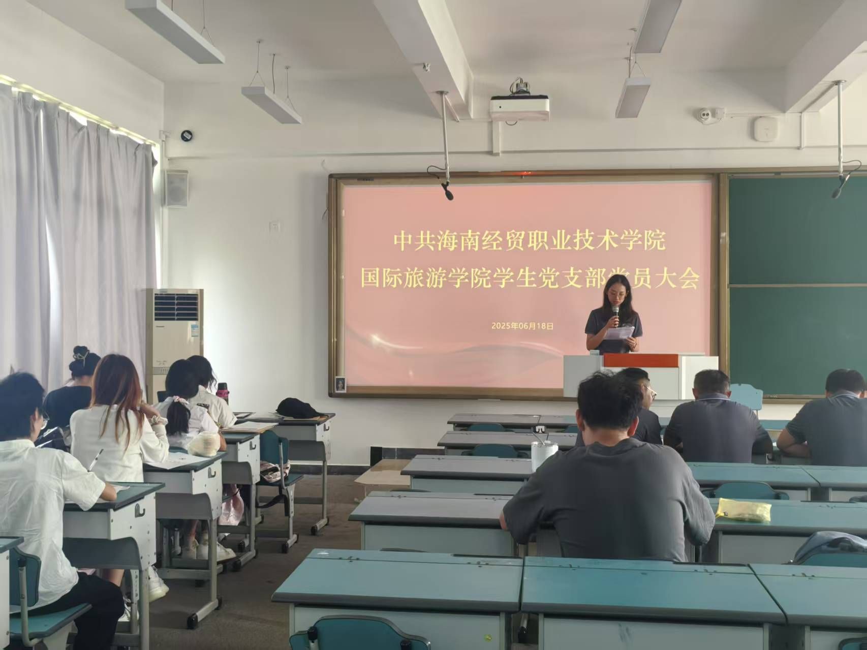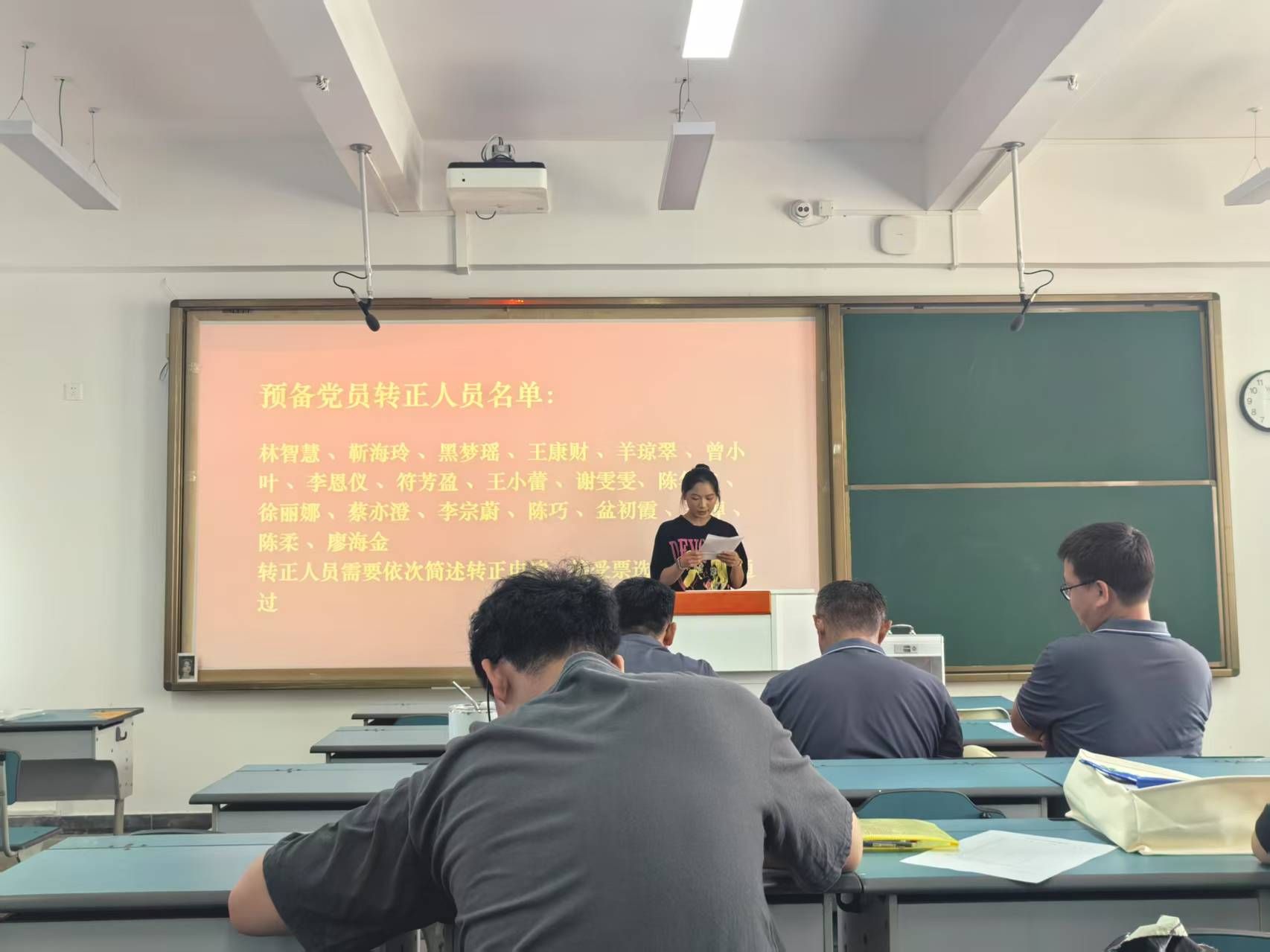 2025年6月18日上午,388vip太阳集团员工党支部于2教506召开预备党员转正大会,会议讨论林智慧等十九位预备党员转正事宜。会议由员工党支部书记李越主持,大会应到正式党员40名,实到28名,符合会议召开条件。