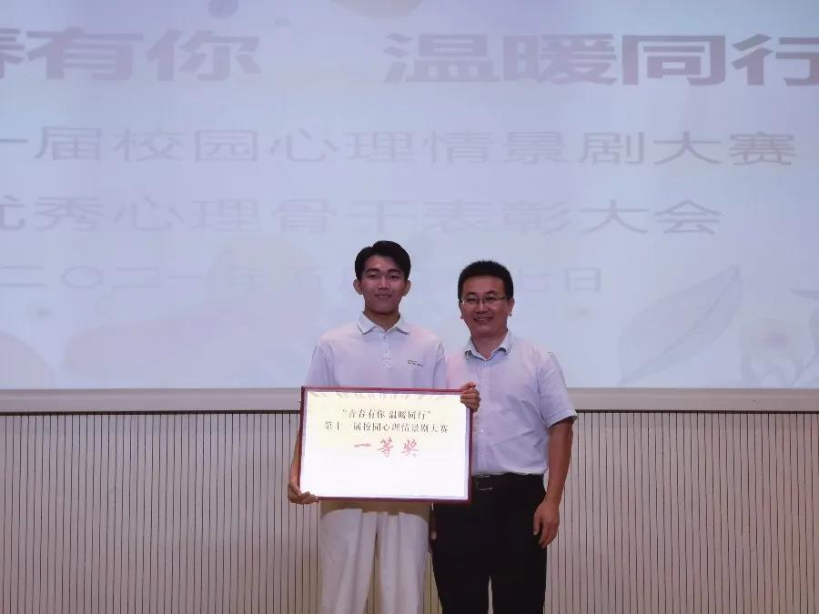 2021年5月27日,海经贸第十一届“青春有你 温暖同行”校园心理情景剧大赛在图书馆报告厅举行。公司心理情景剧《套中人》剧组演员表演技艺娴熟、自然流畅、表演冲击力强,作品通过五幕场景还原一位抑郁症员工青春蜕变的心路历程。最终公司心理情景剧《套中人》荣获大赛一等奖,同时公司符珍老师获得优秀指导教师奖、积极心理工作者。