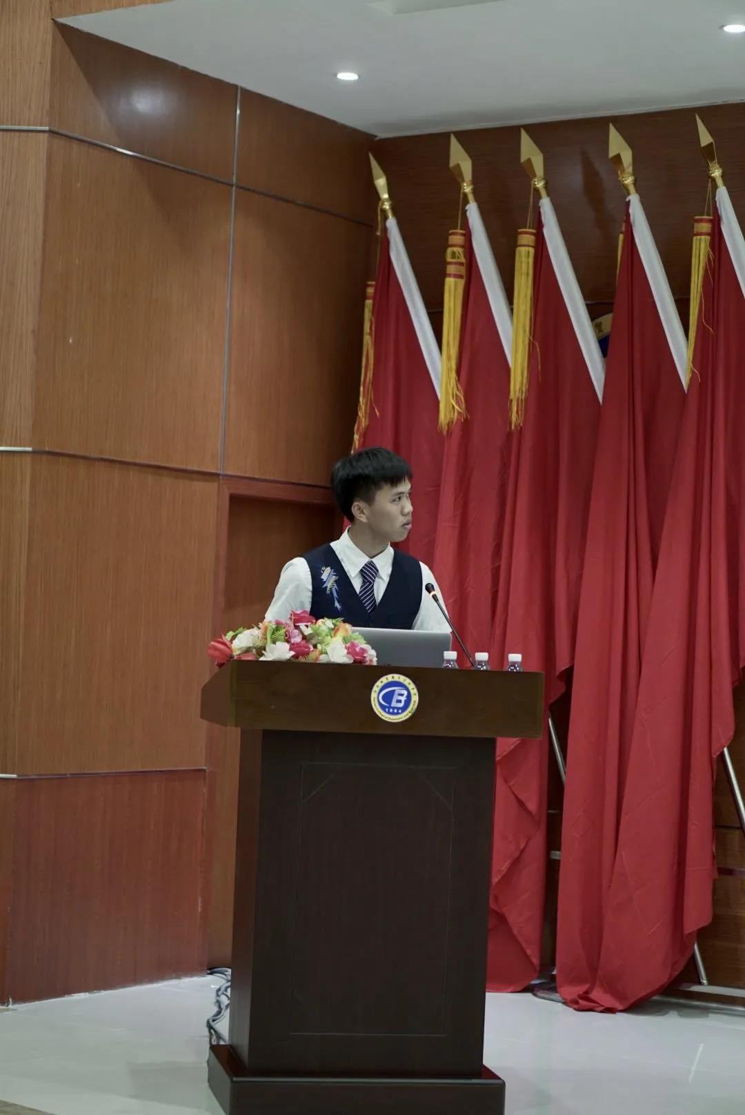 会议第一项,由公司党总支书记符胜为公司五名在读退伍军人颁发纪念奖品。郑馨瑞、邱宇、黄位重、赵家珩、邓美鑫五名退伍军人迈着整齐坚定的步伐,以挺拔高昂的状态展示了军人的雄姿。