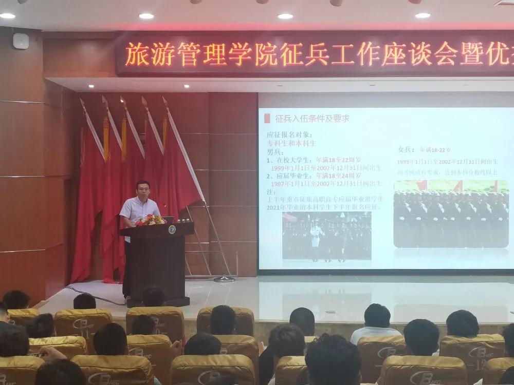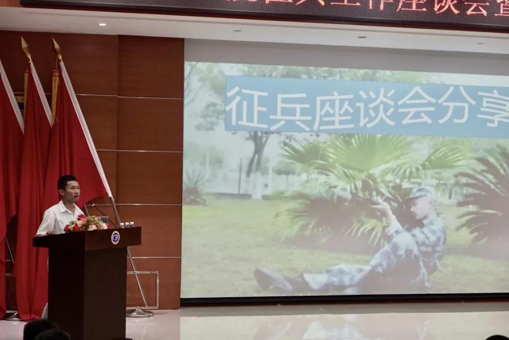 为积极响应国家征兵的号召,巩固国防建设,圆满完成2021年征兵工作,公司于2021年6月8日在经贸宾馆学术交流中心召开了老员工征兵工作座谈会。出席本次会议有公司党总支符胜书记,辅导员符珍、陈俊池、樊靖、张强老师,退伍军人代表郑馨瑞、邱宇、黄位重、赵家珩、邓美鑫五位同学,2019级全体男同学及2020级员工代表。会议由秘书处程焕杰主持。