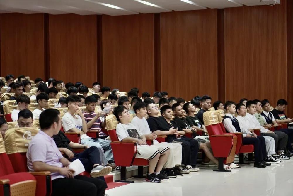 会议第三项,樊靖老师介绍了征兵入伍条件及要求,阐述了当兵的六大好处以及军营风采展示,号召同学们报名参军入伍,携笔从戎,以自己的实际行动报效国家,把成才梦融入强国梦强军梦,在人民军队这个大舞台上书写人生壮丽篇章。