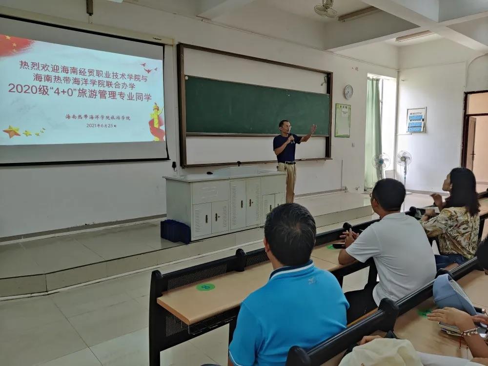 海南热带海洋公司旅游公司副经理陈德广、学工办主任罗丕任对海经贸一行的到来表示热烈欢迎,并进行亲切交流。双方就“4+0”旅游管理联合办学项目性质、招生规模、培养质量进行深度交流。陈德广副经理认为公司“4+0”旅游管理本科专业建设基础扎实、特色鲜明,与热海院本科教育可实现优势互补,强强联合。刘萍男副书记对课程衔接、员工交流、实习就业等方面对项目未来深入持续的发展提出了看法,并鼓励员工常回家看看。