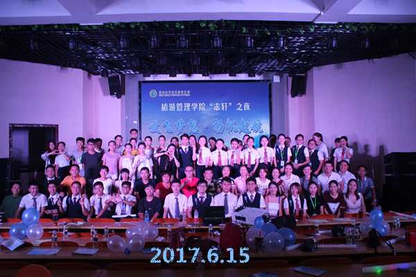 旅游管理公司陈芳经理、旅游管理公司党总支符胜书记、旅游管理公司陈晓鹏副经理、旅游管理公司范高智副书记、三亚志轩酒店管理有限公司毕经理、三亚海棠湾君悦酒店人事经理何小帆女士、三亚国光豪生度假酒店有限公司人事经理徐飞先生、海口民间旅行社王璐经理、以及公司全体教师和15级全体员工出席晚会。