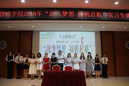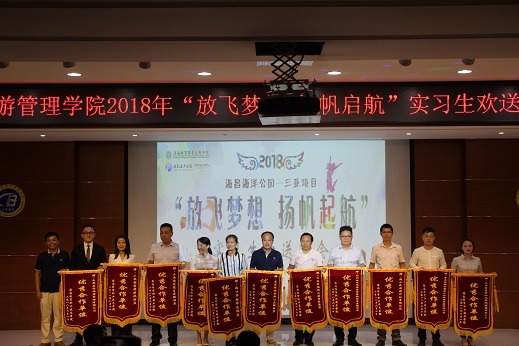 (旅游管理公司唐彩湘报道)为了表达对公司2018年实习生的对美好祝福,让同学们满载大学期间的荣誉和老师的真挚祝福踏上新征程,公司于2018年6月13日晚,在经贸宾馆学术报告厅举行2018年旅游管理公司“放飞梦想,扬帆起航”实习生欢送会。出席本次欢送会的有公司陈芳经理、党总支符胜书记、陈晓鹏副经理、旅游管理公司部分老师、各企业代表以及全体实习生。
