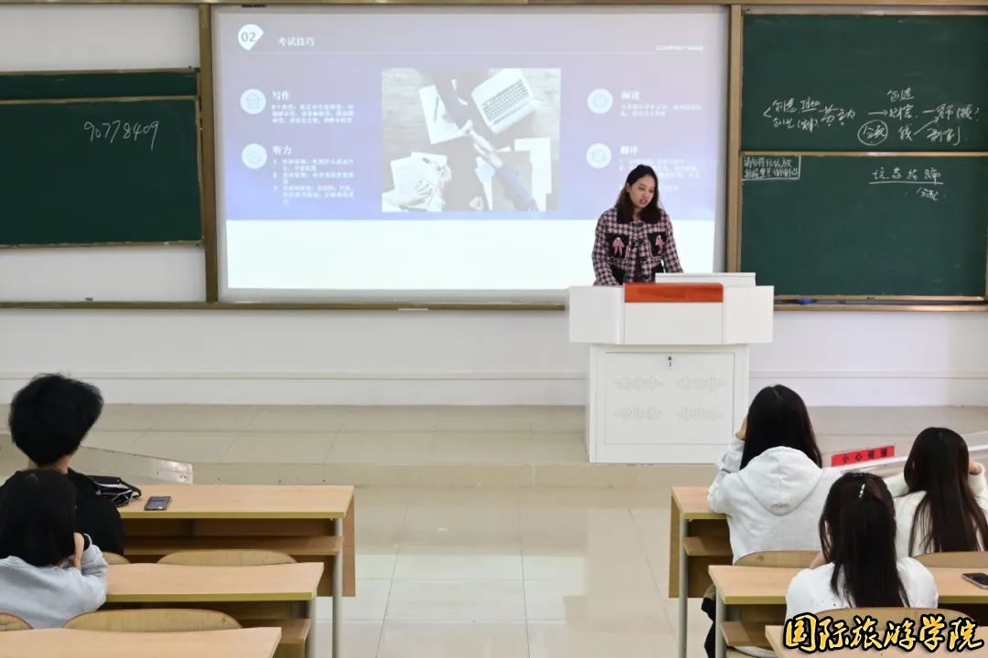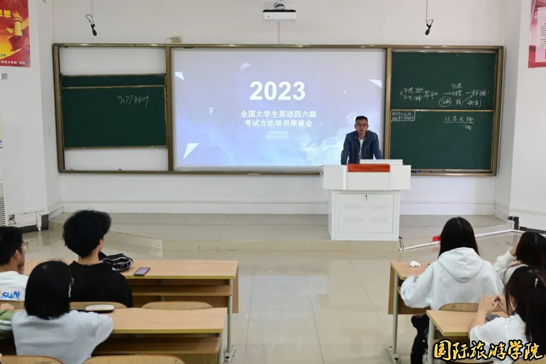 为营造良好的学习风气,鼓励和动员同学们积极做好英语四、六级考试准备,激发同学们的备考热情。2023年12月7日上午,388vip太阳集团组织全院员工举行了四六级考试方法培训座谈会,会议由辅导员樊靖主持,即将上四六级考场的全院员工到场参会。
