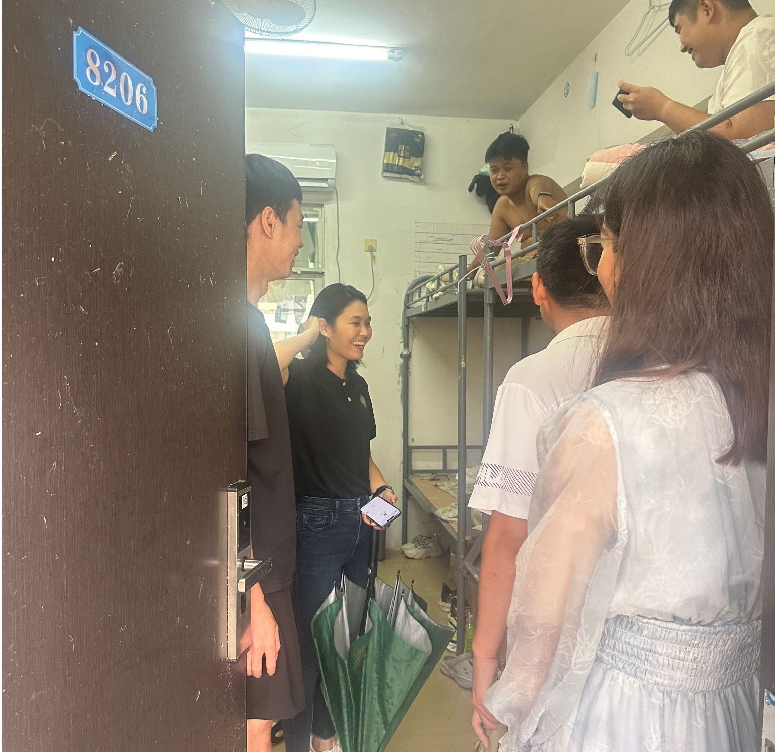 在走访过程中,老师们与新生进行了面对面交流。孙金书记详细询问了新生们对住宿环境、生活需求以及职业规划,耐心听取了他们在新环境中遇到的困难和问题,并给予了针对性的解读和帮助。刘萍男副书记鼓励同学们要相互关心、相互帮助,共同营造和谐的宿舍氛围。新生辅导员查看了宿舍设施,了解宿舍的安全状况,特别强调了宿舍用电安全,提醒同学们要提高安全意识,防患于未然。