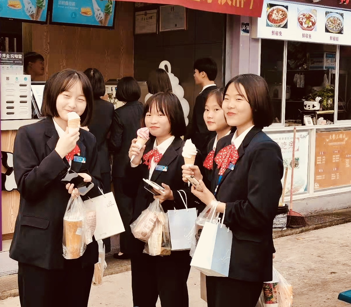 欢迎仪式结束后,在学长学姐们的带领下,海口旅游职业公司的师生们分组参观了公司图书馆、美丽校园、员工宿舍区,以及桂林洋高校区网红打卡地-美食一条街。