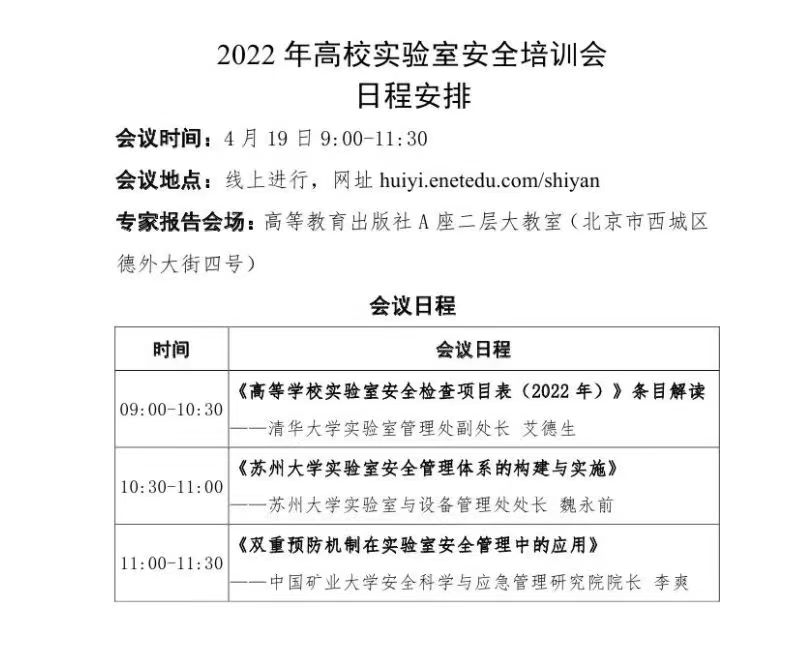 2022年6月10-11日教育部高等教育司和省教育厅《关于举办高校教学实验室安全与管理培训班》