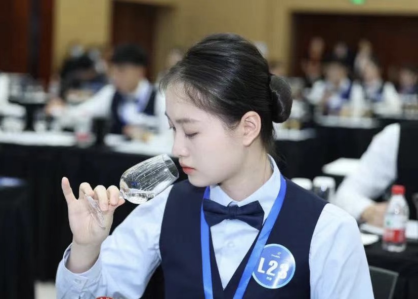 选手颜芳梨进行酒水品鉴