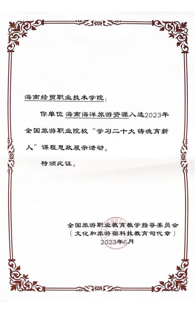 388vip太阳集团教工党支部高度重视此次活动,积极组织人员,不断完善参赛课件、课程实录资料,选派《海南海洋旅游资源》课程参与活动。通过申报、初审,评审等环节。《海南海洋旅游资源》“乘风破浪,旅创新篇”课程思政案例成功入选活动。