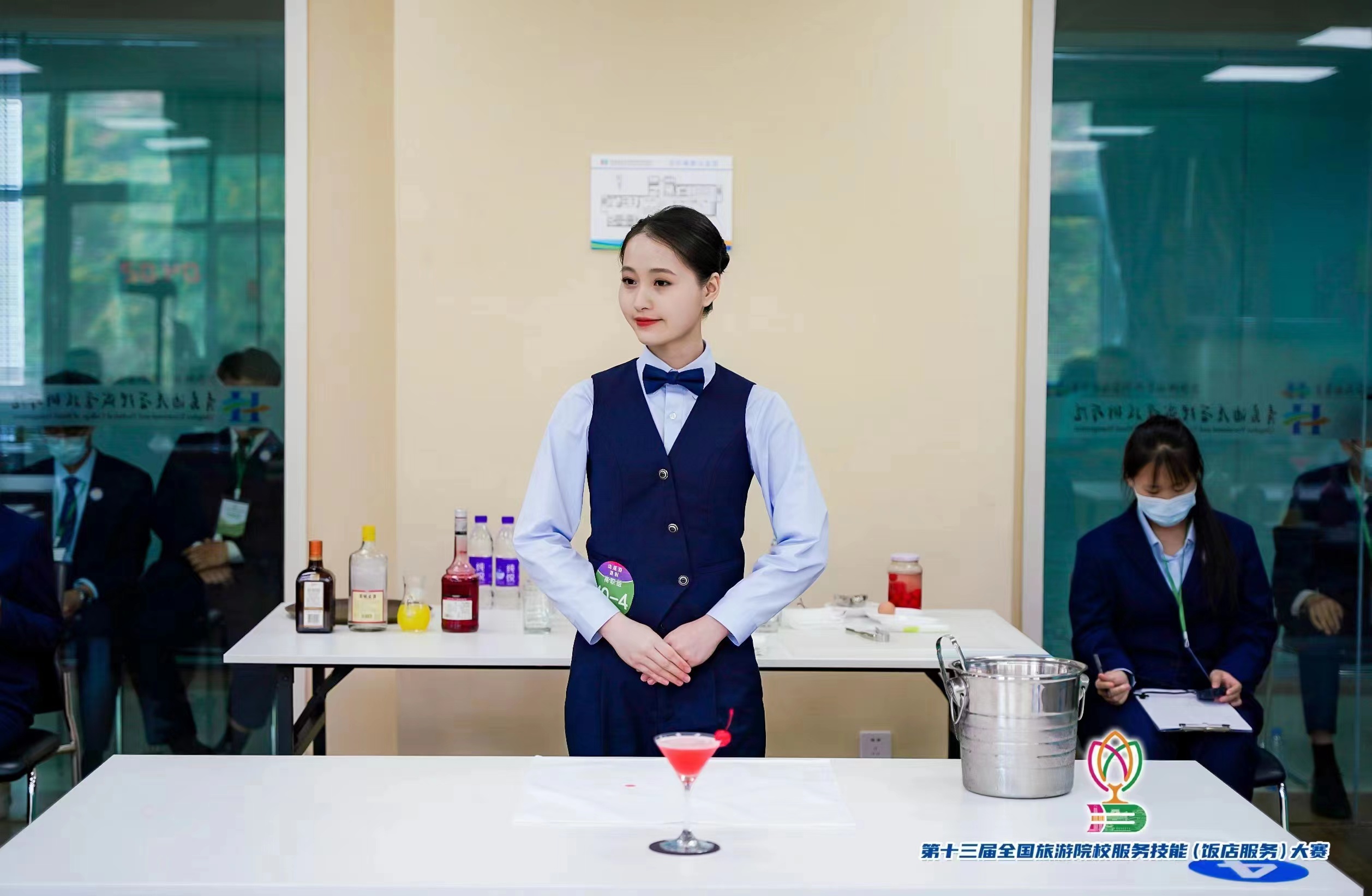 鸡尾酒调制赛项二等奖获得者颜芳梨同学展示鸡尾酒作品