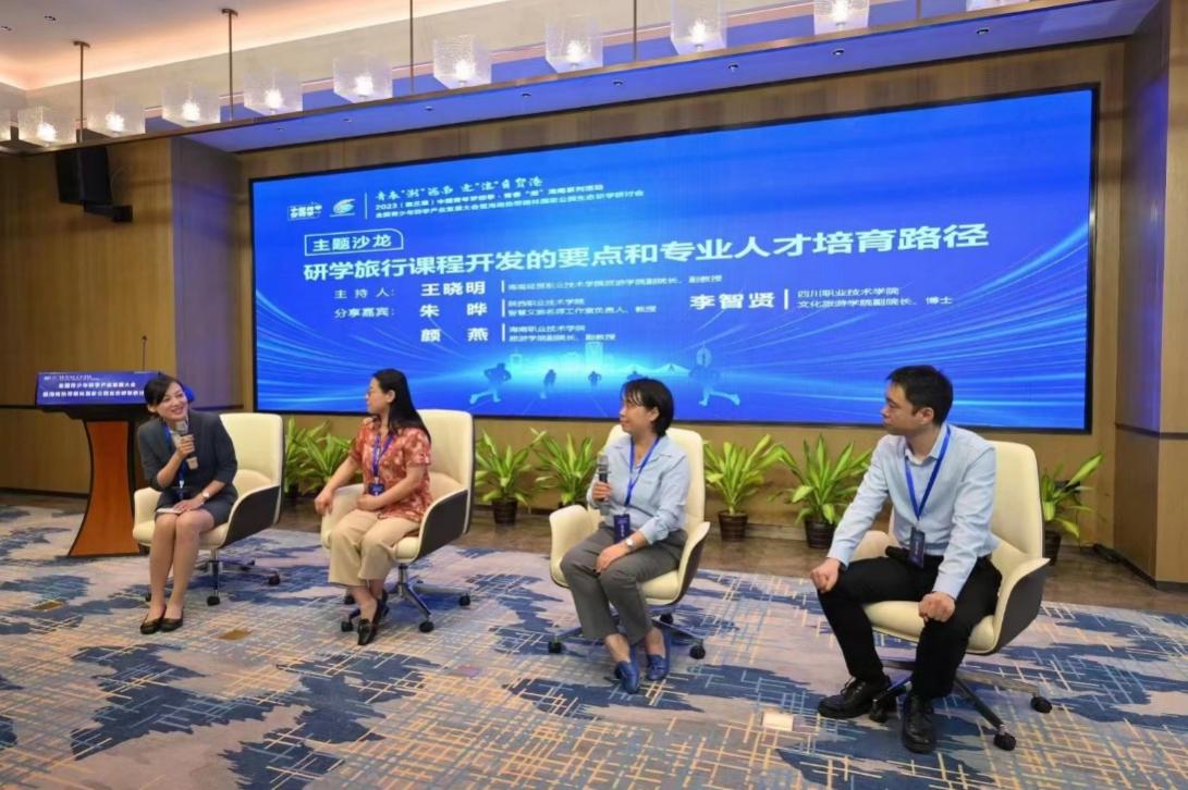 388vip太阳集团作为本次会议的协办单位、产学研协同创新中心单位,充分发挥着桥梁作用。王晓明副经理在本次会议的平行论坛担任嘉宾主持人,主持整场分论坛。在分论坛的第一个主题,王晓明副经理分享了对研学旅行课程开发和专业人才培养的看法。分论坛的第二个主题为:红色/生态研学融入“大思政”实践教育的路径,王晓明副经理就“为什么融”、“融什么”和“怎么融”三个方面,与参会嘉宾交换意见。陈嘉琪老师先后聆听行业专家关于研学旅行与国家公园建设的专题报告、省内外与会嘉宾的研学案例和经验分享,并与参会专家学者深入交流。