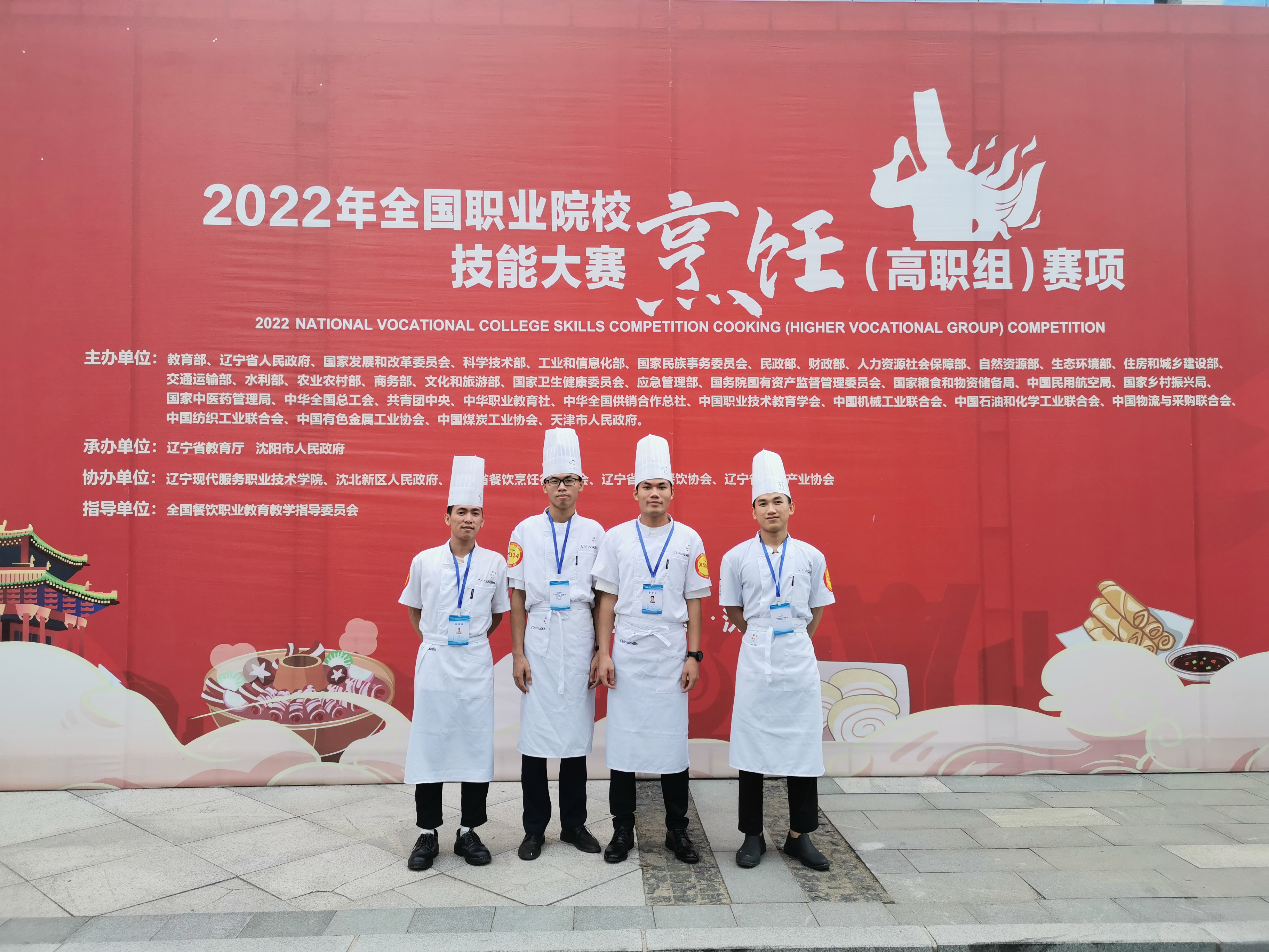2022年8月21-23日,2022年全国职业院校技能大赛高职组“烹饪”赛项在沈阳举办。由388vip太阳集团烹饪工艺与营养专业的员工周小龙、张国旺、潘琨、梁明组成的海南省代表队荣获团体三等奖。