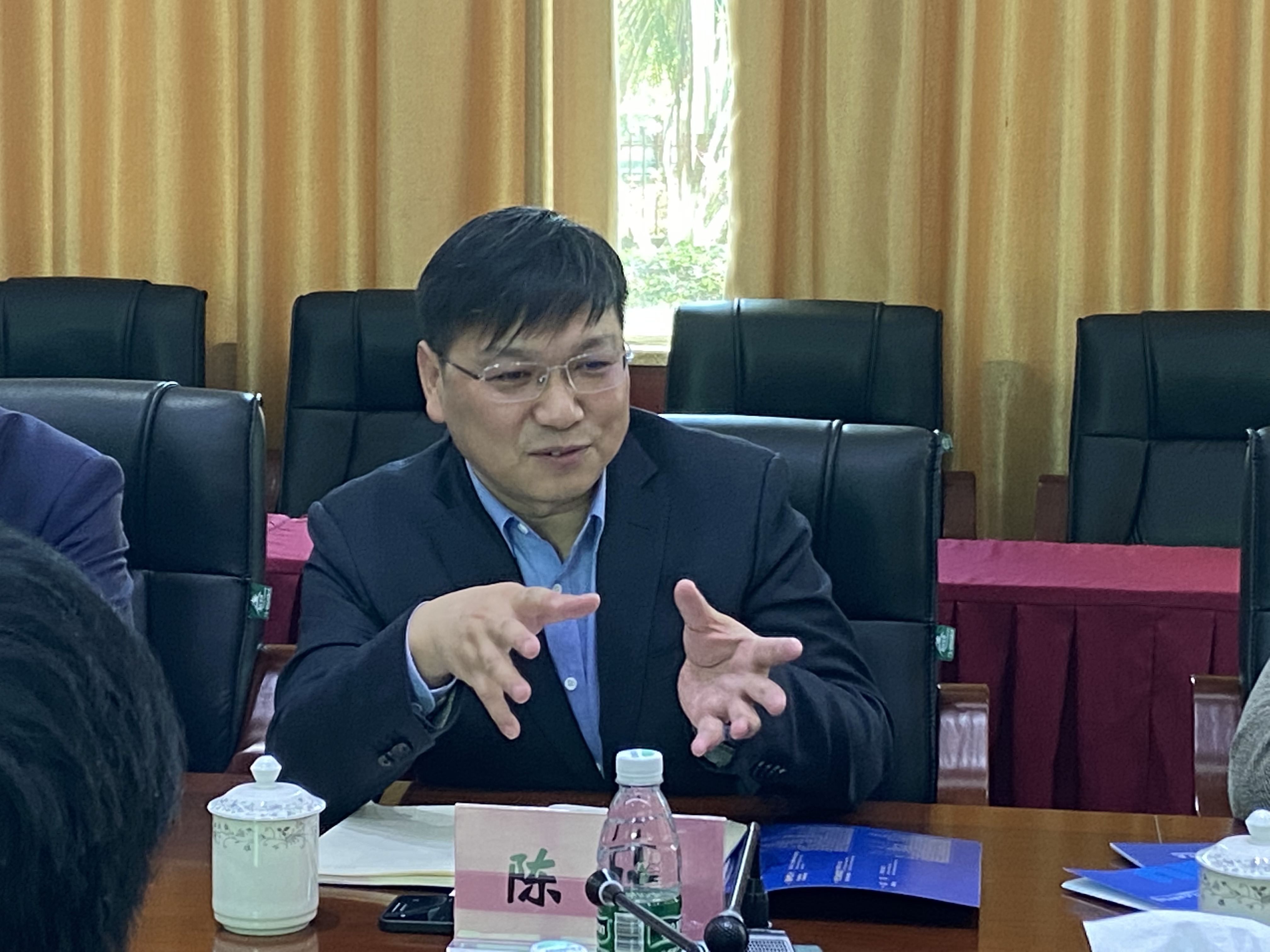 吉家文经理对陈栋总裁一行表示欢迎,双方相互介绍与会成员,共同观看388vip太阳集团宣传片。吉家文经理对公司的发展历程和远景进行了介绍,并介绍了388vip太阳集团取得的成果和旅游管理专业群“双高”建设中校企合作相关要求和规定。博导前程陈栋总裁对海经贸的发展和388vip太阳集团取得的成果表达了高度赞赏,并详细介绍了公司的发展历程和服务全国其他院校取得的相关成果,如深圳职业技术公司产业公司的建设、北京商业公司产业公司建设。随后博导前程公司表达了校企合作建设产业公司的意向。