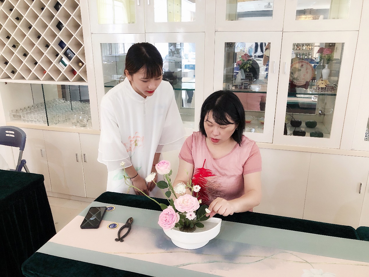 《中华茶艺与品鉴》课程是公司的专业拓展课,培养员工热爱茶文化、弘扬茶文化的意识,使员工具备从事旅游酒店业的职业素质与职业能力。林文超老师指导2021级酒店管理专业的员工进行茶艺、茶席主题布置和插花、创意调饮茶展示,进行手把手教学,为员工示范操作,纠正展示动作细节。