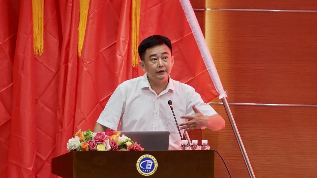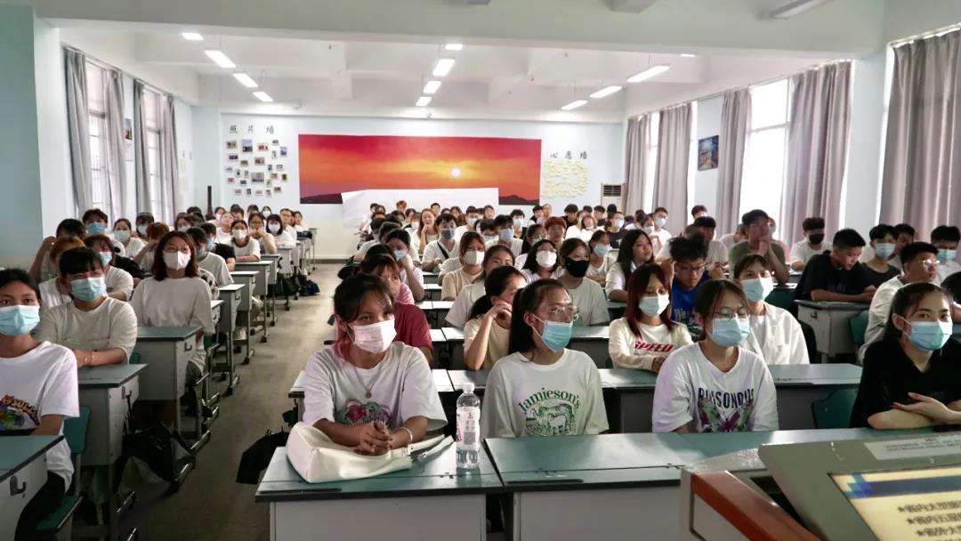 2021年9月13日,388vip太阳集团于经贸宾馆学术报告厅举行2021级新生开学典礼。公司经理吉家文、党总支书记符胜、党总支副书记刘萍男、副经理王晓明、副经理陈松及全院教职工出席本次开学典礼。应疫情防控工作的需要,今年公司首次通过网络直播的方式报道开学典礼现场。2021级的545名新生在主会场和11个视频直播分会场共同参加了这场特殊的开学典礼。