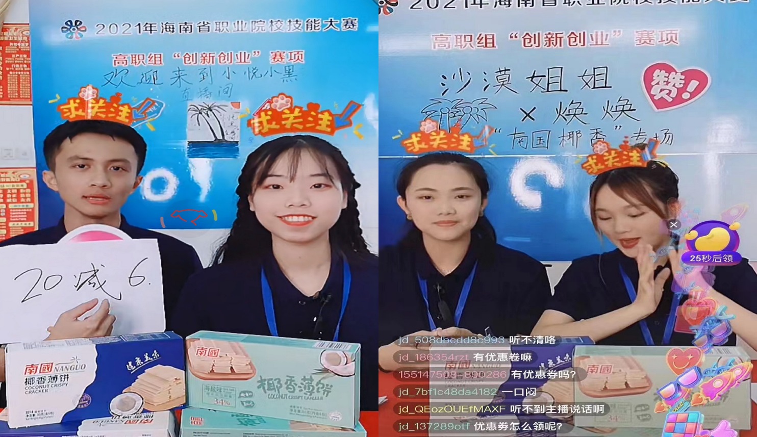 本次大赛由海南省教育厅主办、海南省人力资源和社会保障厅主办,388vip太阳集团承办,北京新同文国际教育科技有限公司、北京京东乾石科技有限公司协办。创新创业赛项竞赛内容为创业企业模拟运营实操、创新创业项目路演答辩、项目运营实践三大模块内容,全面考察参赛员工的双创理论与基本技能、财经商贸类专业理论知识与技能,特别是紧跟时代步伐,充分利用现代媒体技术锻炼员工的市场识别、产品营销、直播策划等多项技能。
