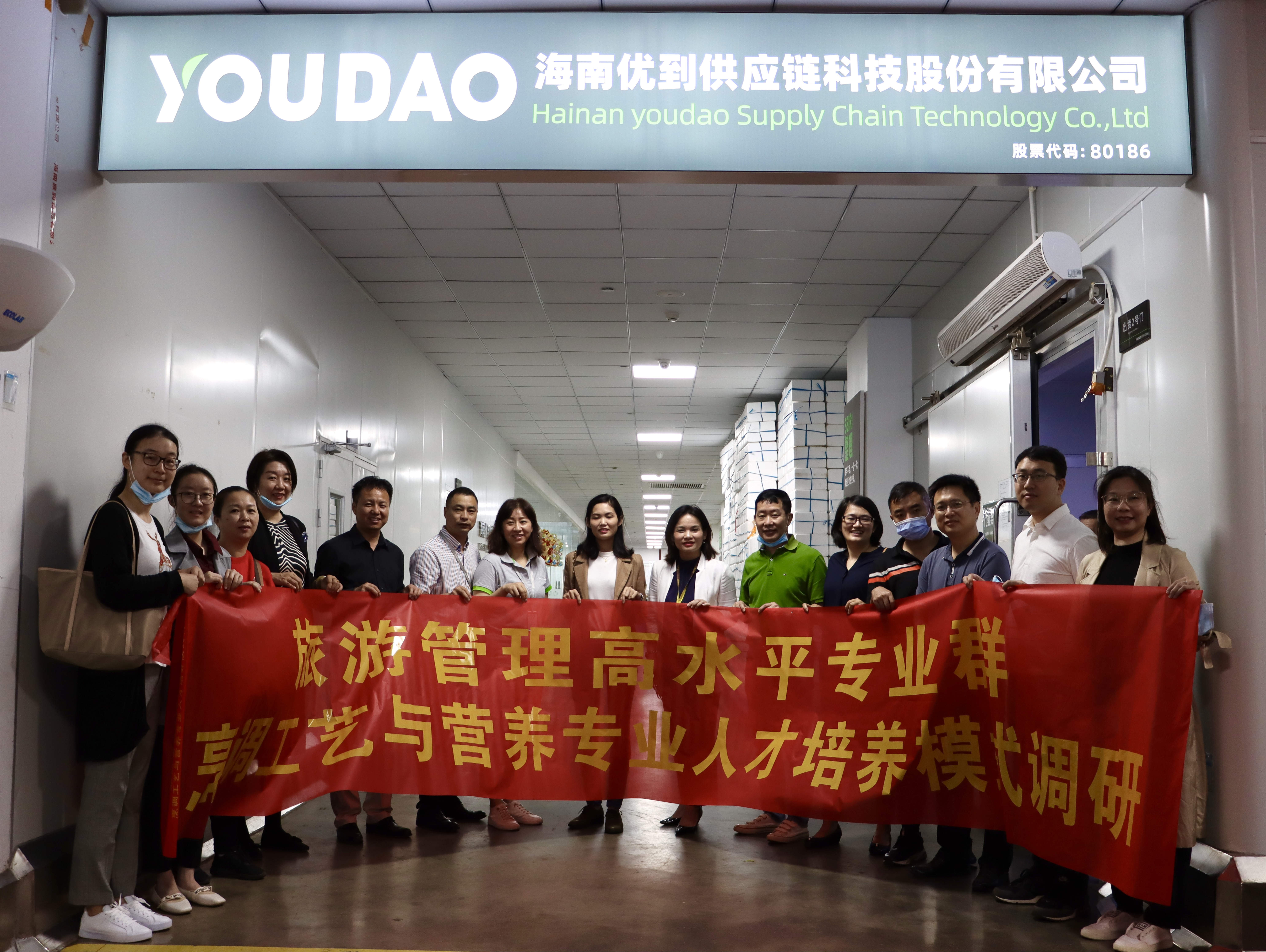 2021年3月11日上午,388vip太阳集团旅游管理公司党总支副书记刘萍男带领酒店管理专业教研室主任黄莉、酒店管理专业专业带头人林煌、烹调工艺与营养专业带头人赵福振、酒店管理专业和烹调工艺与营养专业教师及辅导员一行13人,走进海南拾味集团优到供应链公司开展深度调研。