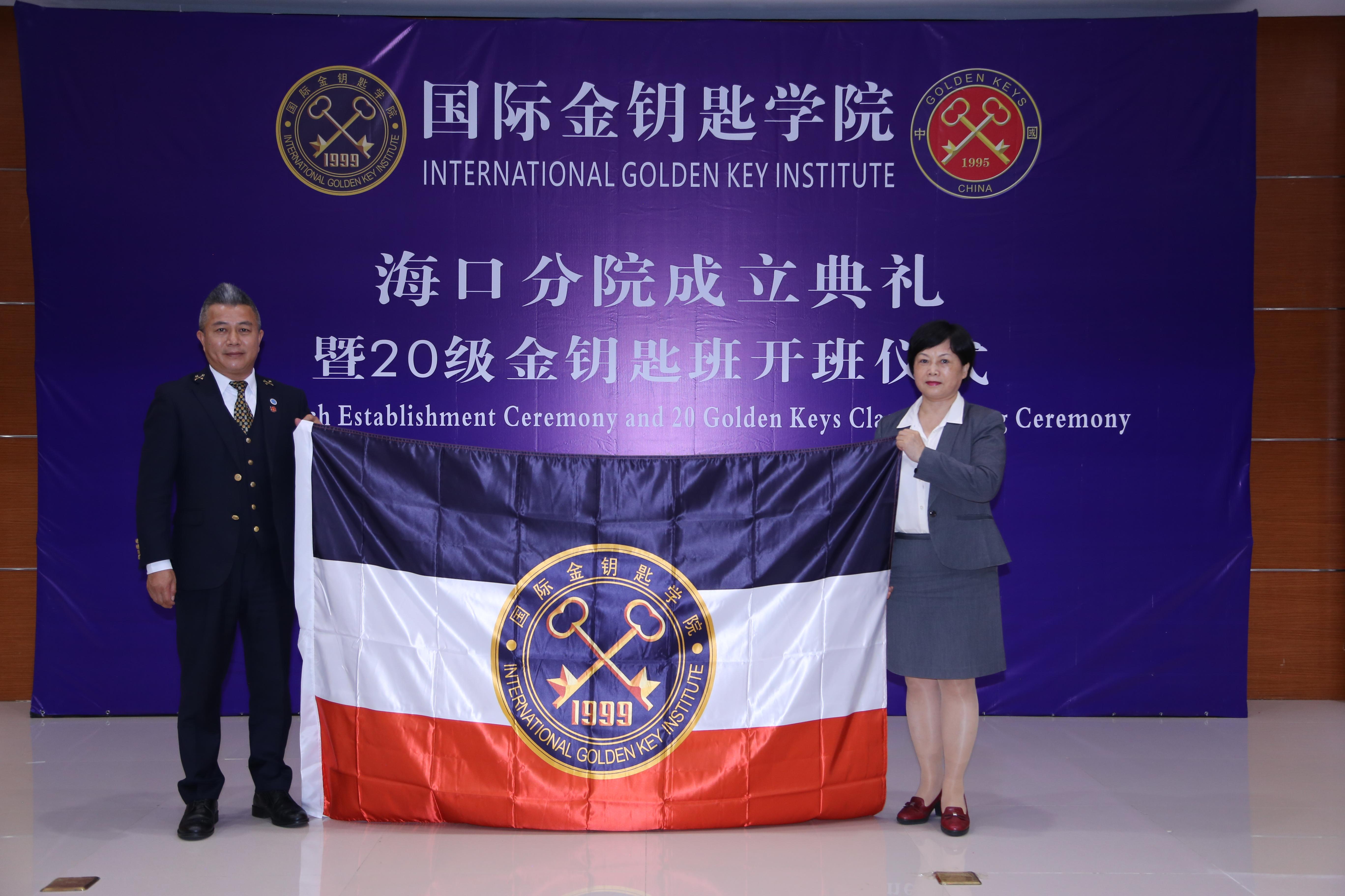 中国金钥匙主席助理李兴鸿先生和公司万力维副董事长为国际金钥匙公司海口分院授旗