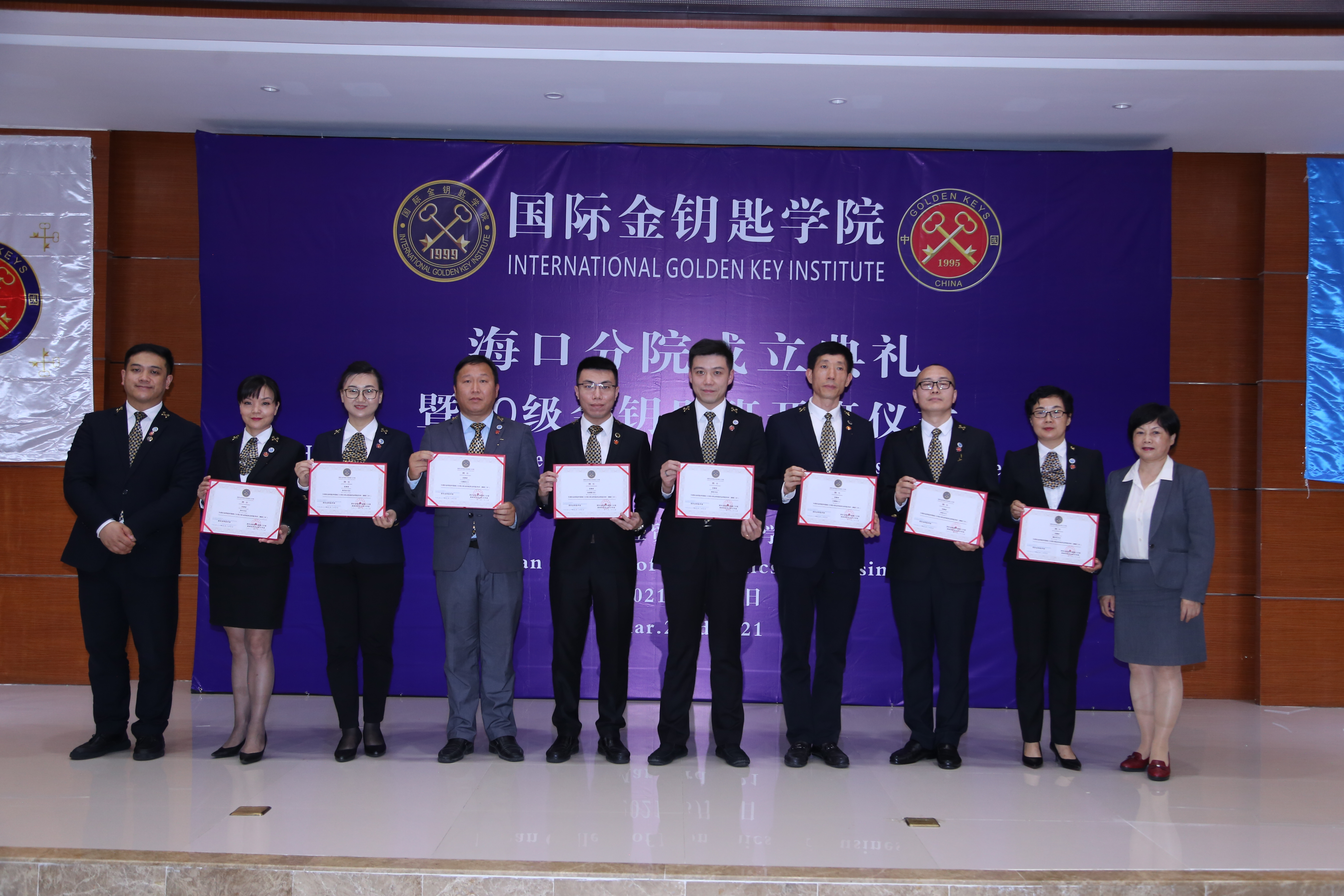 2021年3月23日,国际金钥匙公司海口分院成立典礼暨20级金钥匙班开班仪式在388vip太阳集团学术交流中心报告厅隆重举行。中国金钥匙主席助理李兴鸿先生、公司副董事长万力维教授和旅游管理公司党总支符胜书记应邀出席本次活动。出席本次活动的还有中国金钥匙副秘书长、国际金钥匙公司(中国区)运营中心运营官张勇、金钥匙班导师、顾问委员代表毕海斌先生以及公司酒店管理专业师生代表。