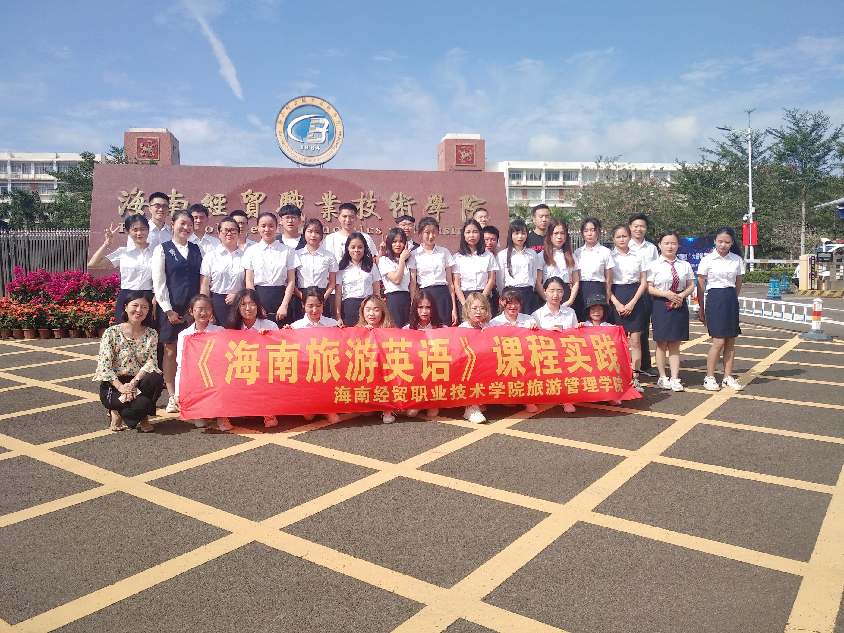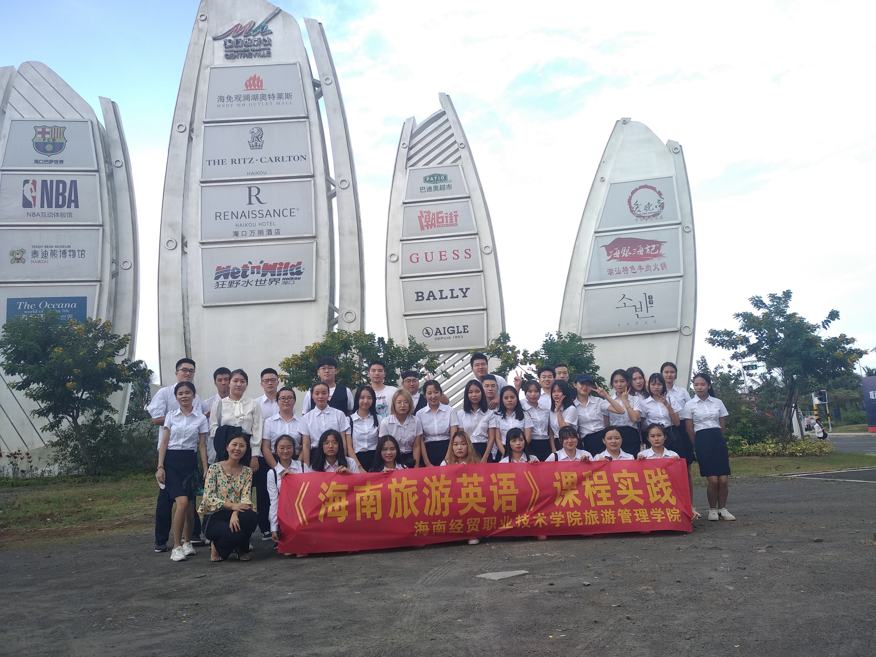 (旅游管理公司报道)为了推动2019年388vip太阳集团旅游管理公司骨干专业建设项目顺利完成,有效推动教学改革,2019年10月8日下午,在旅游管理专业教师金丹的带领下, 2018级旅管学徒制1班全体同学开展《海南旅游英语》课程实践。此次课程实践的地点是海口观澜度假区,实践教学的目的是让同学们通过实地考察观澜湖度假区形成旅游线路安排并用用英语对该度假区进行讲解。