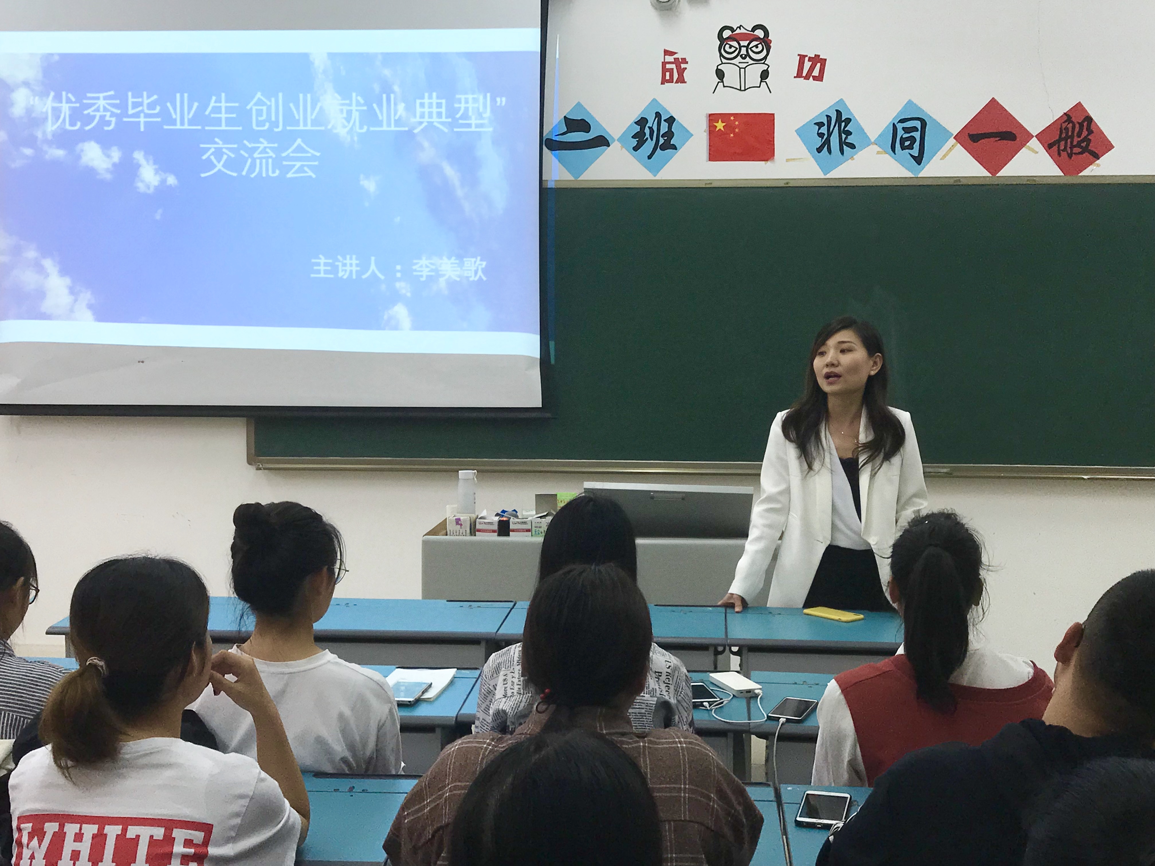 李美歌总监则向同学们讲述了自己的学习历程、工作经历、工作规划,在讲到自己的工作经验时,她特地向各位同学讲述自己去面试的经验和自己去面试他人的经验,使同学们更清楚的认识目前自身存在的问题,对未来拥有更加正确清晰的目标。