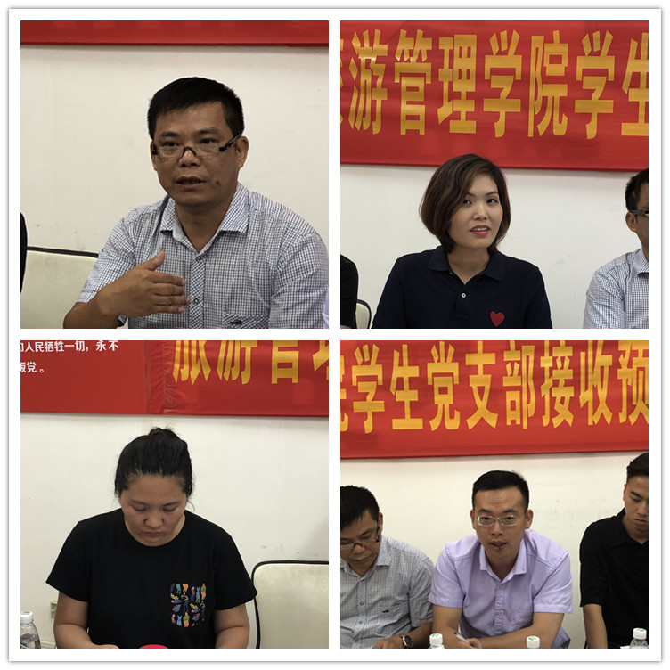 为响应党的号召,培养优秀党员。2019年5月27日16:00, 旅游管理公司党支部在党员之家2-309召开了预备党员接收大会,出席本次会议有旅游管理公司党总支符胜书记,员工党支部书记刘萍男老师,员工党支部纪检委员郑伟老师,员工党支部樊靖老师,正式党员徐维同志,赵志山同志。会议由刘萍男老师主持,党支部6名党员参与。