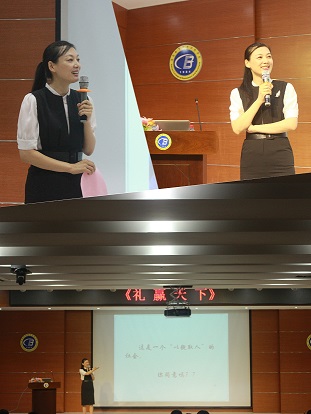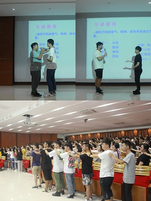 接着,王晓明老师通过指导同学们的微笑、神情、肢体动作以及同学们的上台互动小游戏,使同学们亲身体验到了礼仪的重要性,也让大家明白了细节更是一个人的基本素质和修养。