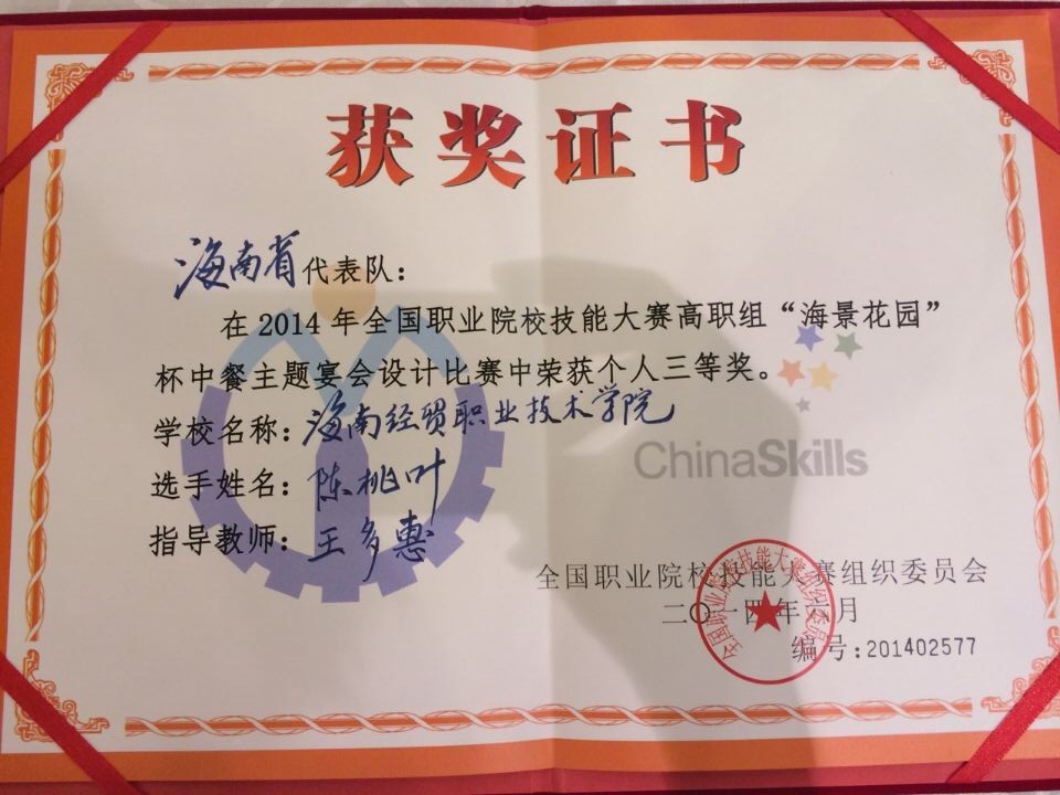 喜讯:公司选手参加2014年全国职业院校技能大赛高职组中餐主题宴会设计大赛获奖