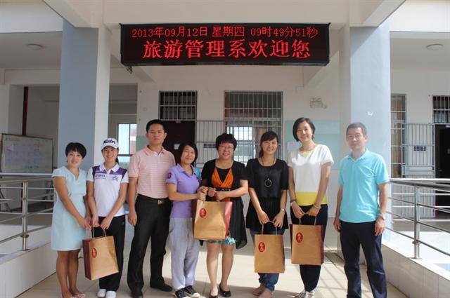 这三位同学目前是我系校企合作单位——海南原生态探险国际旅行社里的实习生,除了她们还有许多同学在该旅行社工作,两个月来,他们在各自的岗位上兢兢业业,努力工作,获得了社里同事们的一致好评,特别是前段时间,同学们在实际工作的锤炼中逐步提高了开拓市场的主动意识和灵敏度,准备的捕捉到了商机,帮助旅游社组建了由各单位经理及领导构成的旅游团并为之设计了高端旅游线路,赢得了客人的赞许,给社里创造了实实在在的利润,也给自己赢得了好口碑和中秋福利。面对社里的奖励,她们想到了系部、想到了传授给自己专业知识的老师,希望能将这份喜悦和老师们共享。